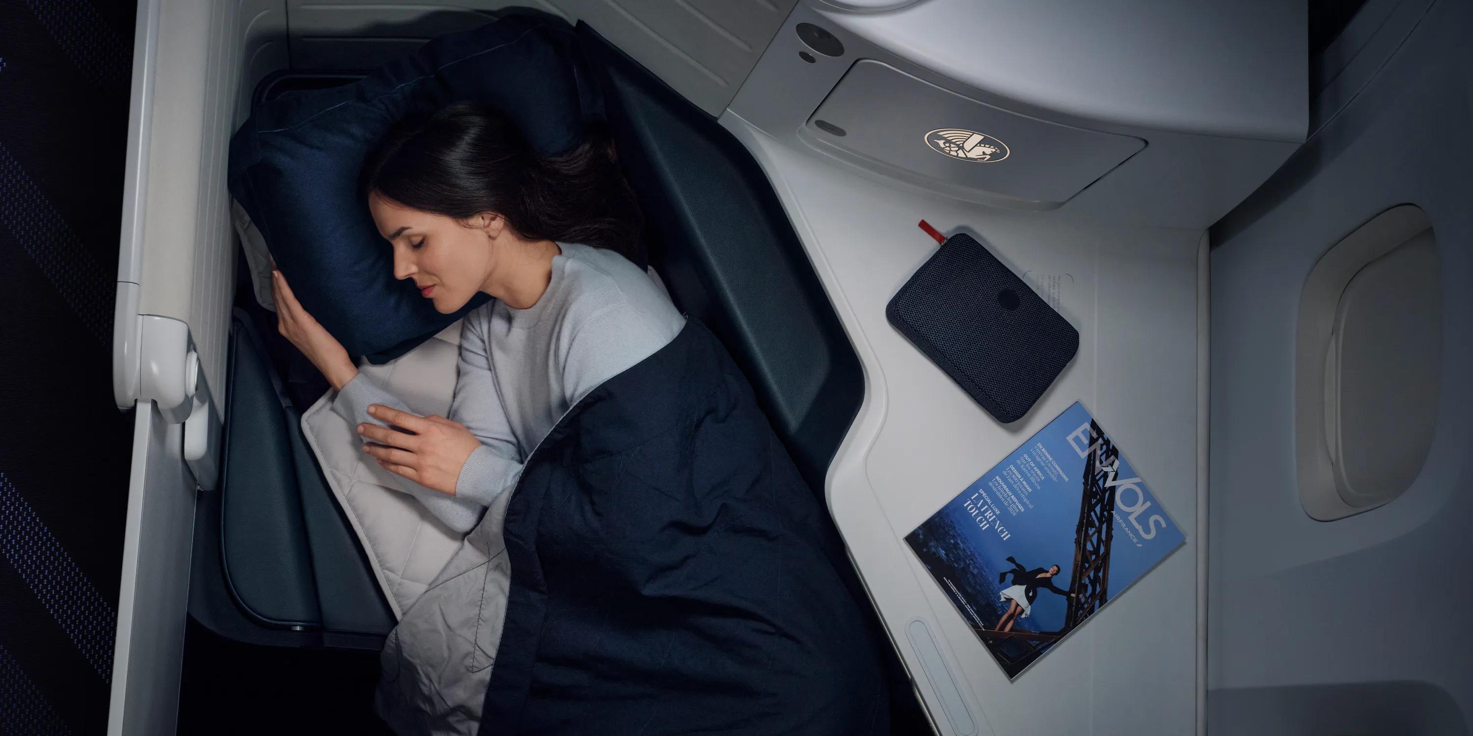 Profitez également d'accessoires vous permettant d'apprivoiser en douceur le décalage horaire : un oreiller ultra moelleux et une élégante couette bleu anthracite.